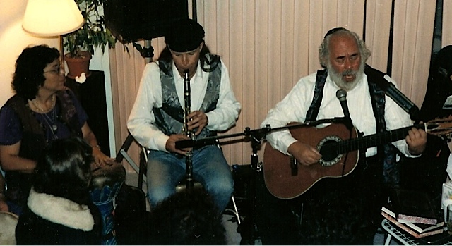 Reb Shlomo Carlebach--guitar, Richard Hardy--winds, Joy Krauthammer--percussion